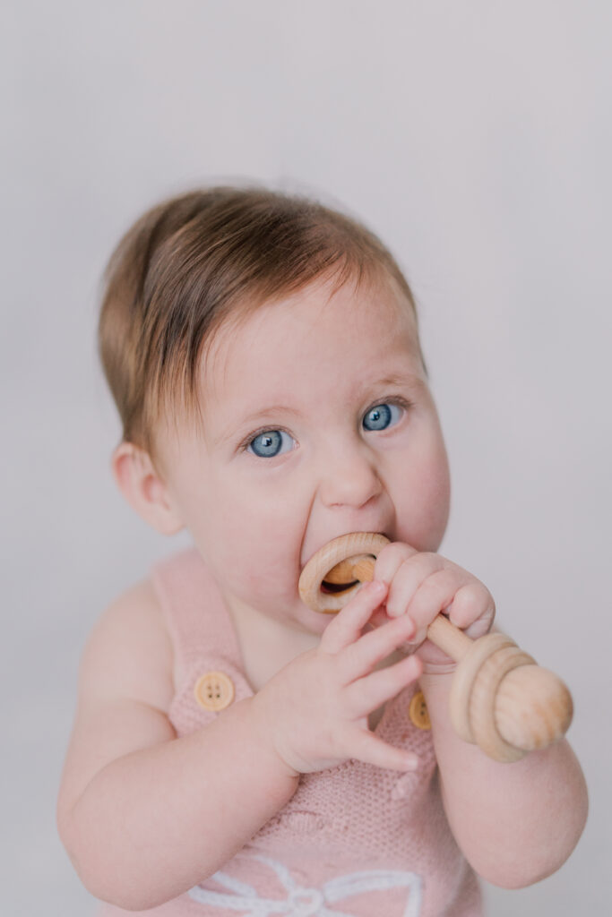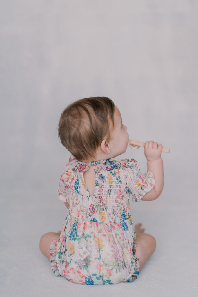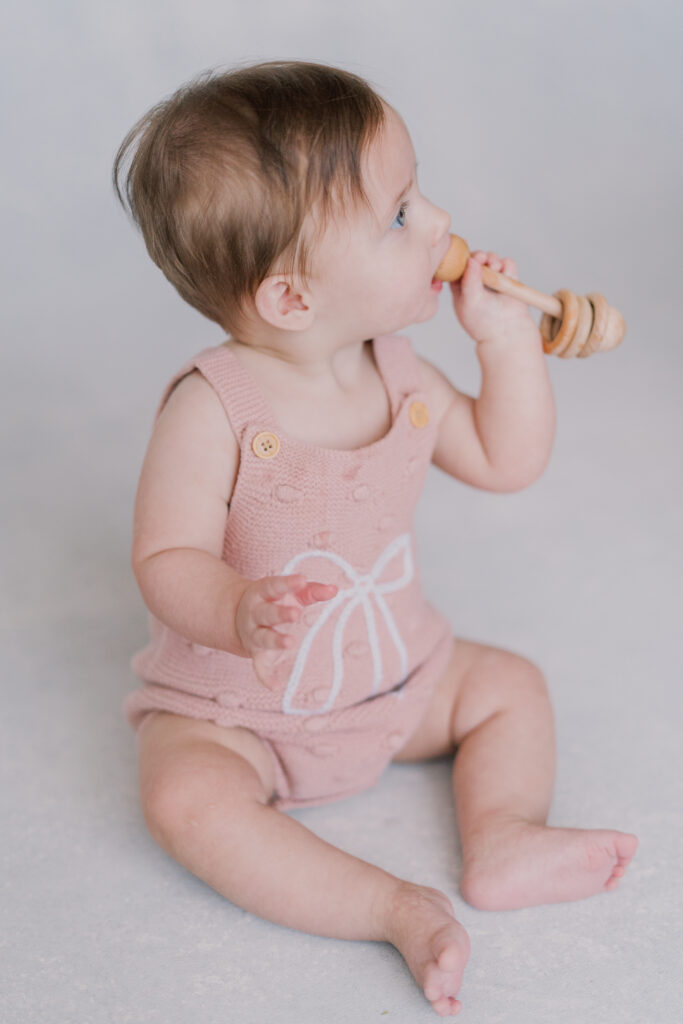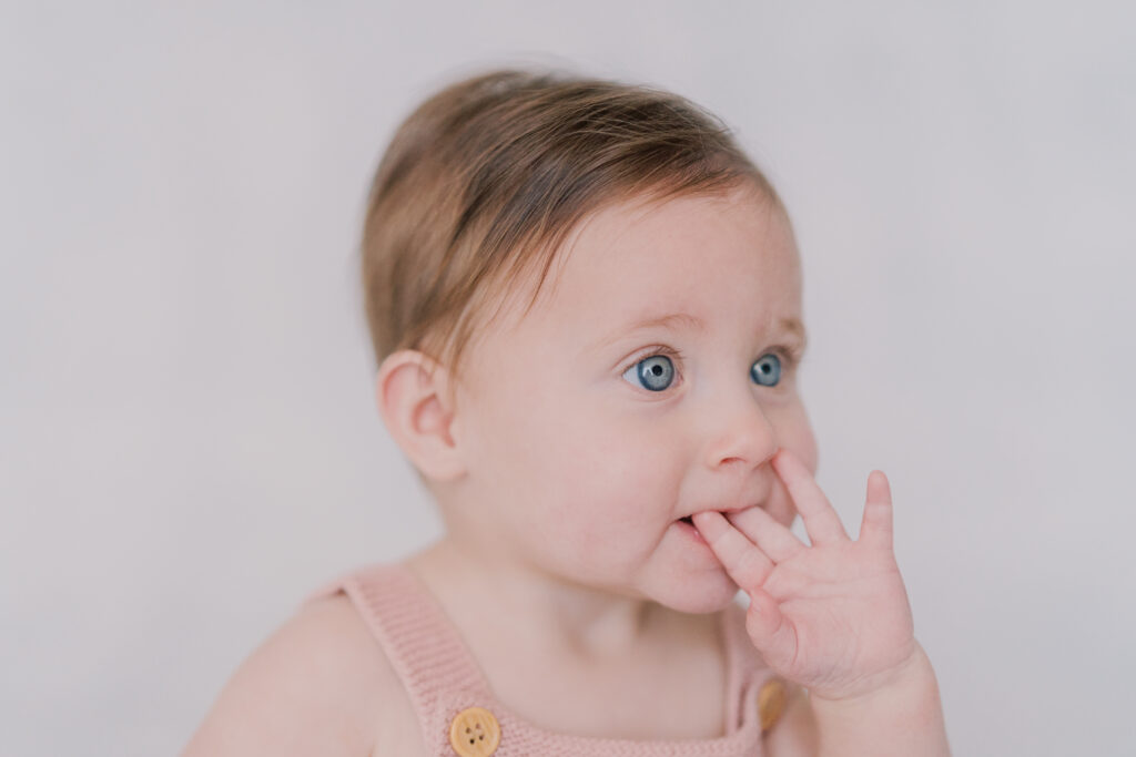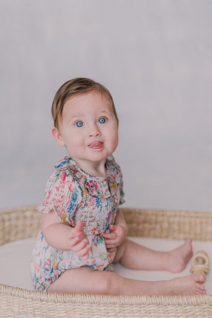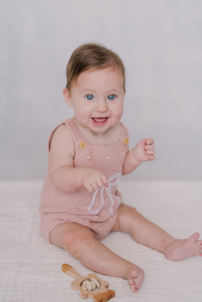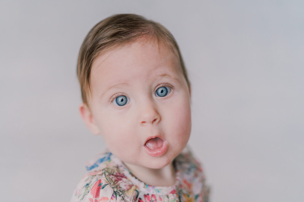 Sweet little Mary has hit such an exciting milestone! She can sit up all on her own! Our session was full of giggles, tiny waves, and a little singing to keep those smiles coming. Her bright blue eyes absolutely sparkle, and I can’t believe how much she’s grown.